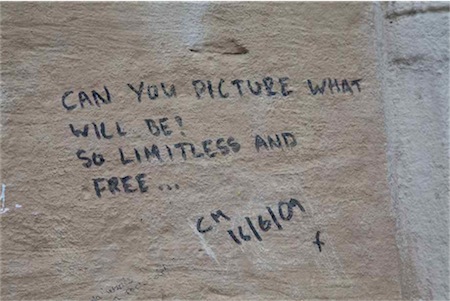 Hij zit aan tafel. Zijn lichaam beeft. Voor hem ligt een vel papier met een aanzet tot een gedicht. Tussen de oranje geverfde balken van het dak hangen posters. De PSP-affiche met koe en naakte vrouw, een afbeelding van Che Guevara, een uitvergrote foto van de acrobaten van de elpeehoes Strange Days.