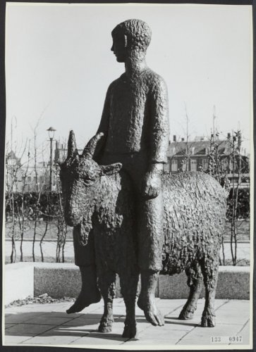 De bokkerijder’ hier nog in de tuin van het Stedelijk. Het stond toen niet op een bakstenen sokkel, zoals het er nu staat! Foto: Rijksvoorlichtingsdienst