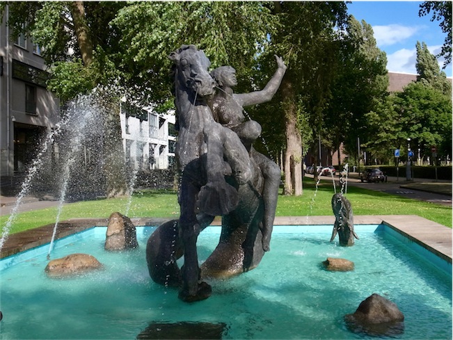 Dichter A. Roland Holst schreef een gelegenheidsgedicht voor ‘Amphitrite’, dat op een van de rotsblokken in de fontein staat gebeiteld: