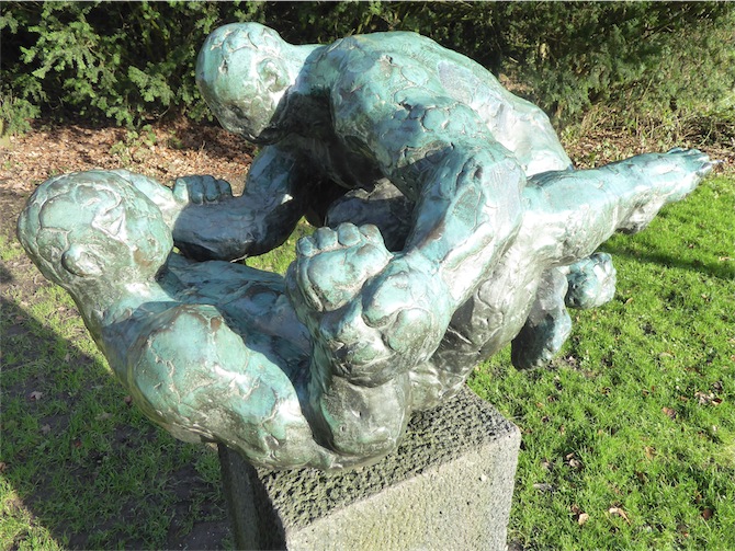 In de reeks Sculpturen van Oost ditmaal ‘De worstelaars’ van beeldhouwer Hans IJdo. Het bronzen beeld staat sinds 1960 in het Flevopark.