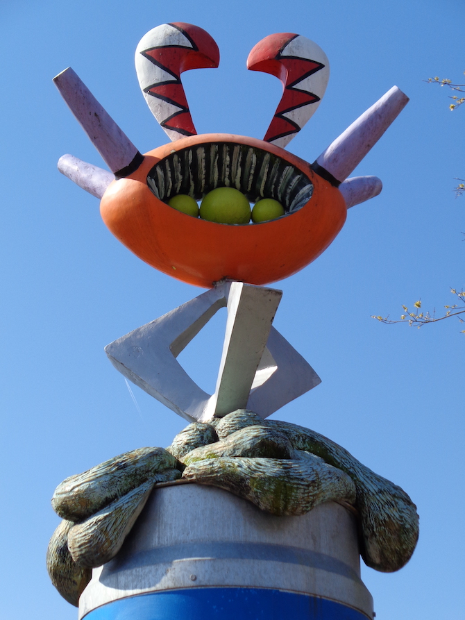 Maar wat doet een Afrikaanse reliekhouder dan toch op een zuil vol met reclameposters? Hier op dit drukke kruispunt vervult hij zijn oorspronkelijke functie: hij waakt over de passerende mensen. Hier waakt hij dus niet over de doden maar over de levenden. Omdat de Mbulu Ngulu traditioneel op een mand met overblijfselen van een voorouder geplaatst werd, staat hij nu boven op een peperbus. Het is een simpel beeld –‘een hoofd op drie pootjes’ – maar tegelijk een beschermer. ‘De peperbus maakt onderdeel uit van het kunstwerk. Mbulu Ngulu is blijvend, reclame vergankelijk,’ aldus Schabracq.