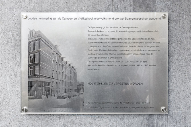 Een gesprek met Freda Cohen Rapoport. Haar herinneringsplek is de Sparrenweg 39 in de Oosterparkbuurt. Daar hangt aan de gevel een plaquette ter nagedachtenis aan de Joodse leerlingen en leraren van de Sparrenwegschool.