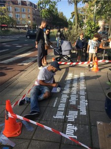 ➤ In de zomer van 2020 gaat er een gedicht van mij gekalligrafeerd worden op het ’s-Gravesandeplein in Amsterdam-Oost. Het gaat om het project, ‘Poëzie op de Stoep’ van stichting Granate. Doelstelling van Granate: ‘Om alle bewoners en groepen in Amsterdam te verbinden wordt gezocht naar gedichten die universeel, simpel, vrolijk en verbindend zijn. Kunst die een glimlach tovert op het gezicht van voorbijgangers. In de gedachte van wijlen burgemeester Van der Laans “Zorg goed voor deze lieve stad” zal het straatbeeld worden opgevrolijkt en verfijnd. We kiezen voor levende dichters, juist omdat de stad leeft, omdat poëzie leeft, en omdat monumenten niet voorbehouden hoeven te zijn aan overledenen. Wij laten de buurt zien wat de buurt aan poëzie en kunst te bieden heeft.’ Meer info.